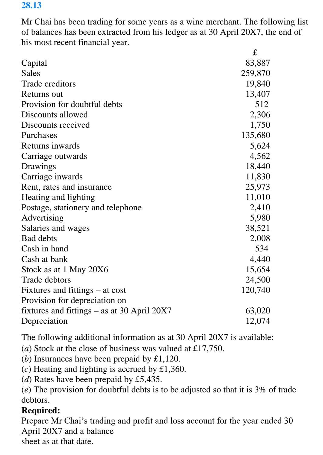 Solved 28 13 Mr Chai Has Been Trading For Some Years As A Chegg Com